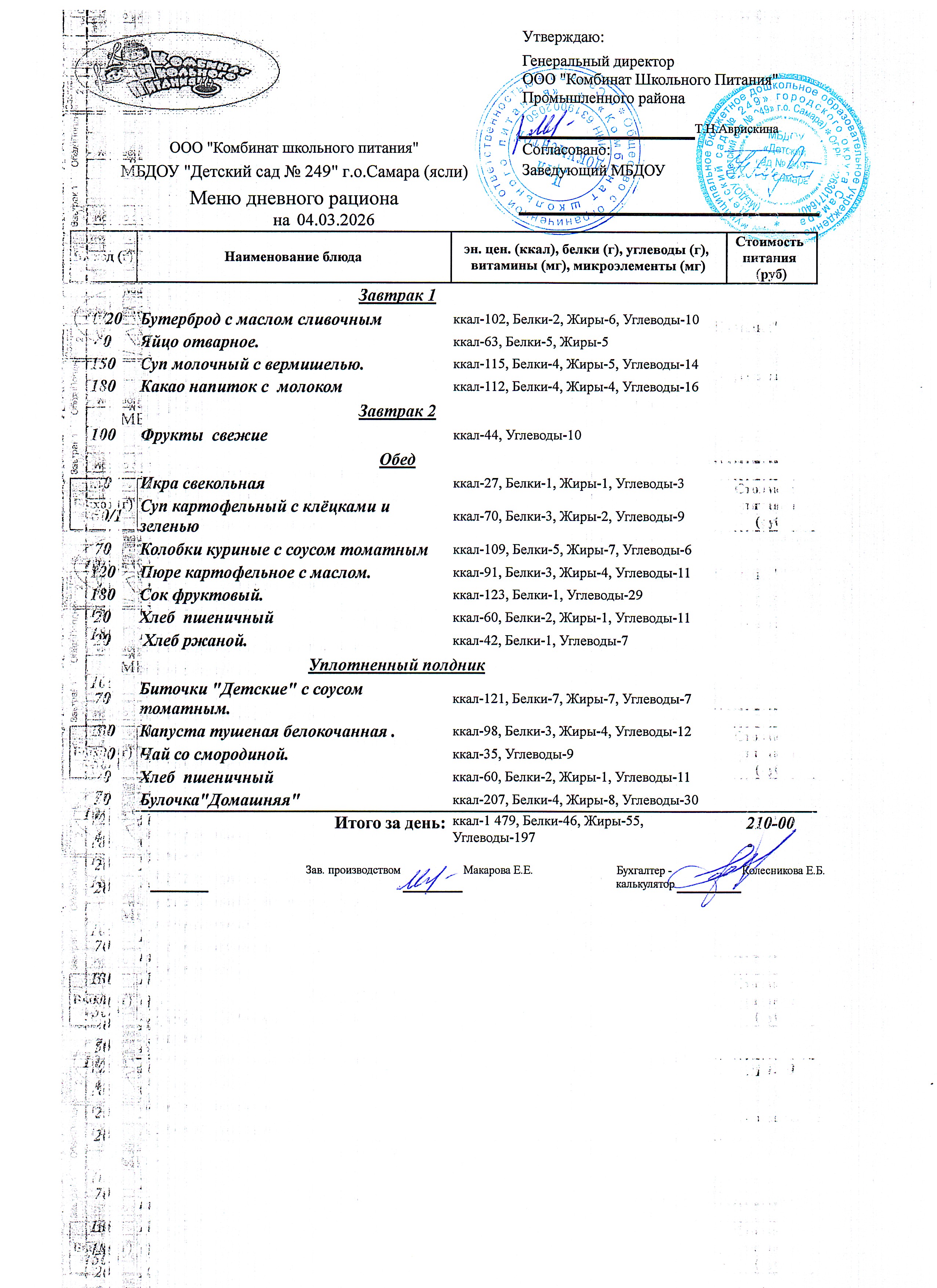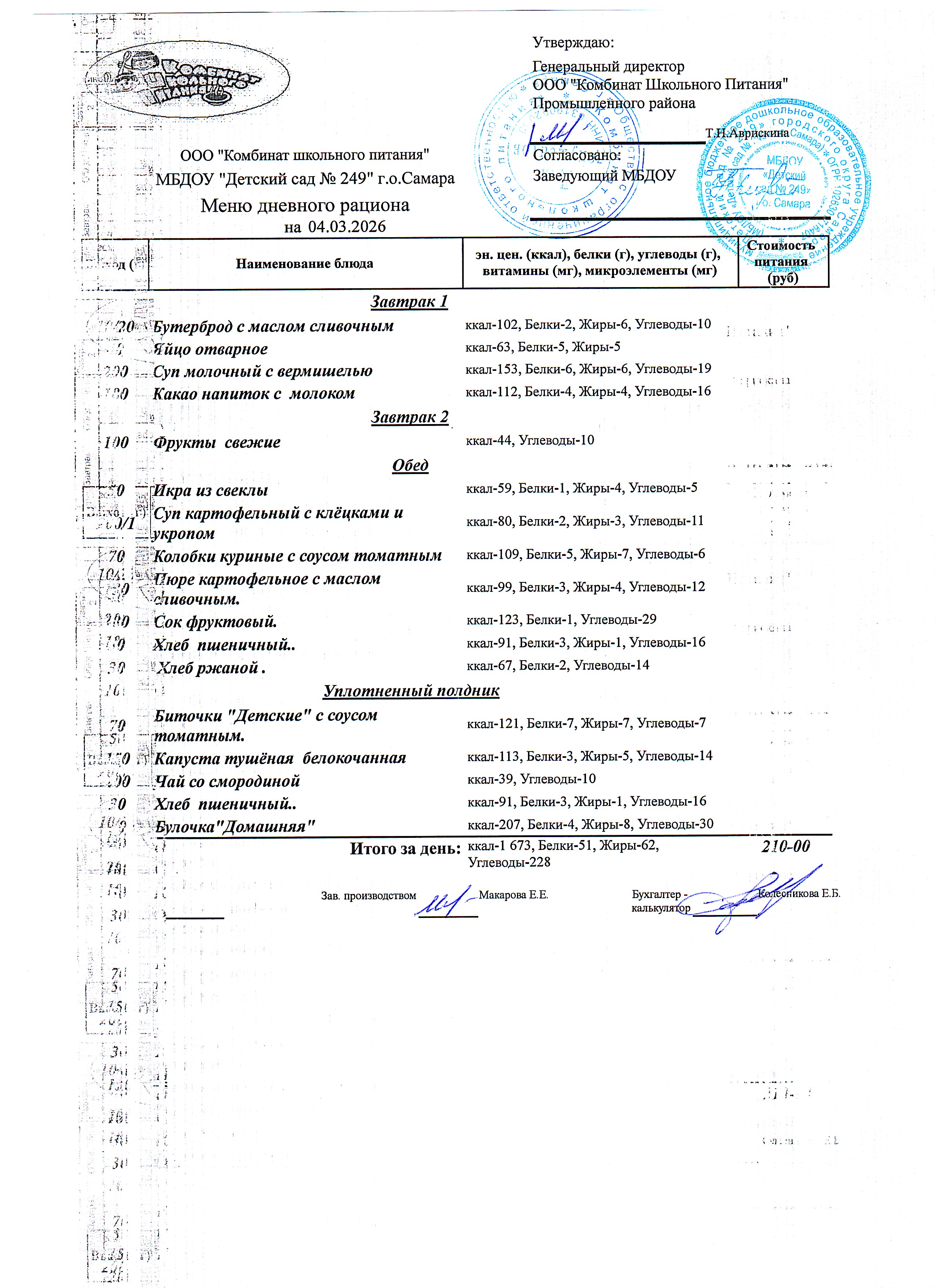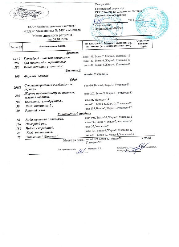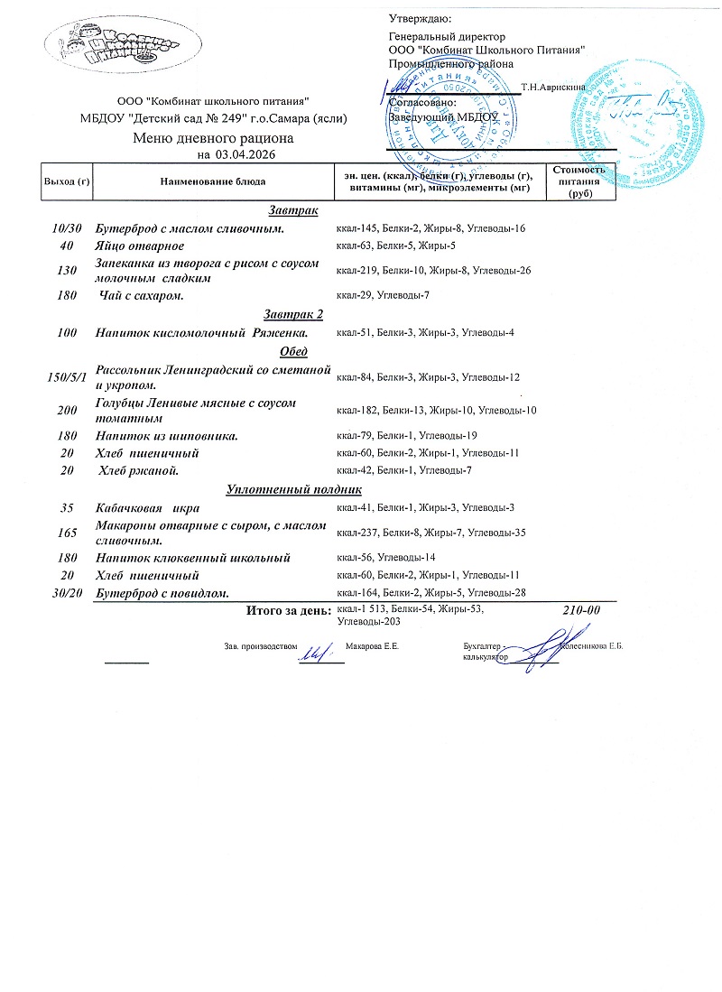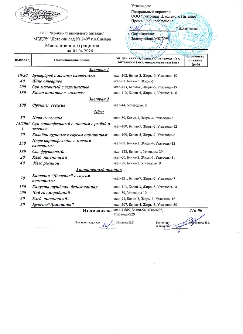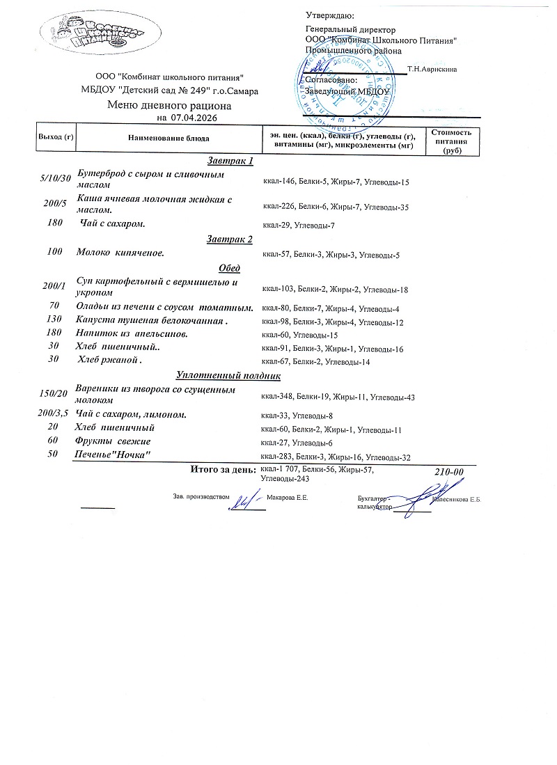 Основное 10-дневное меню для детей от 3 до 7 лет (весна)