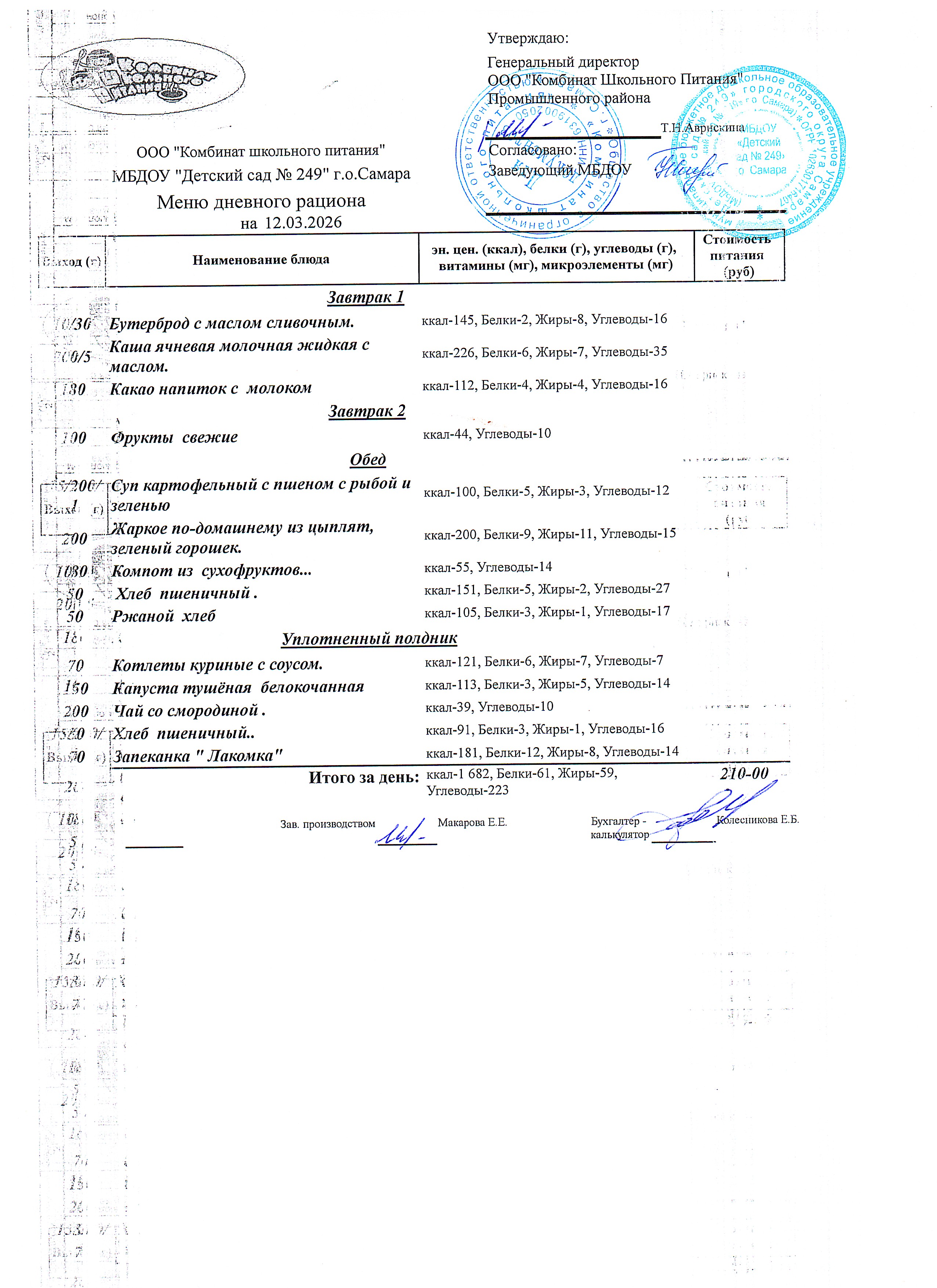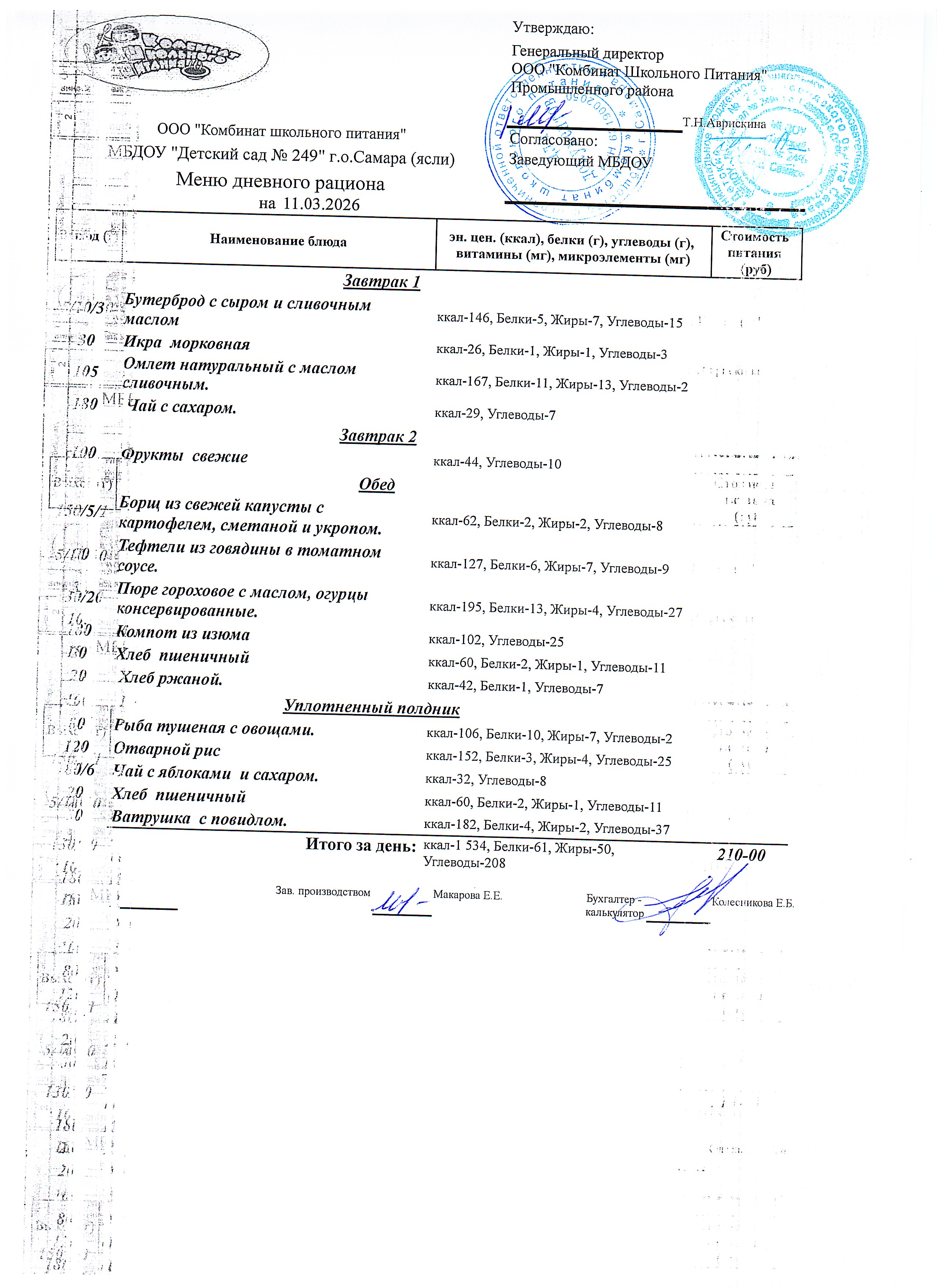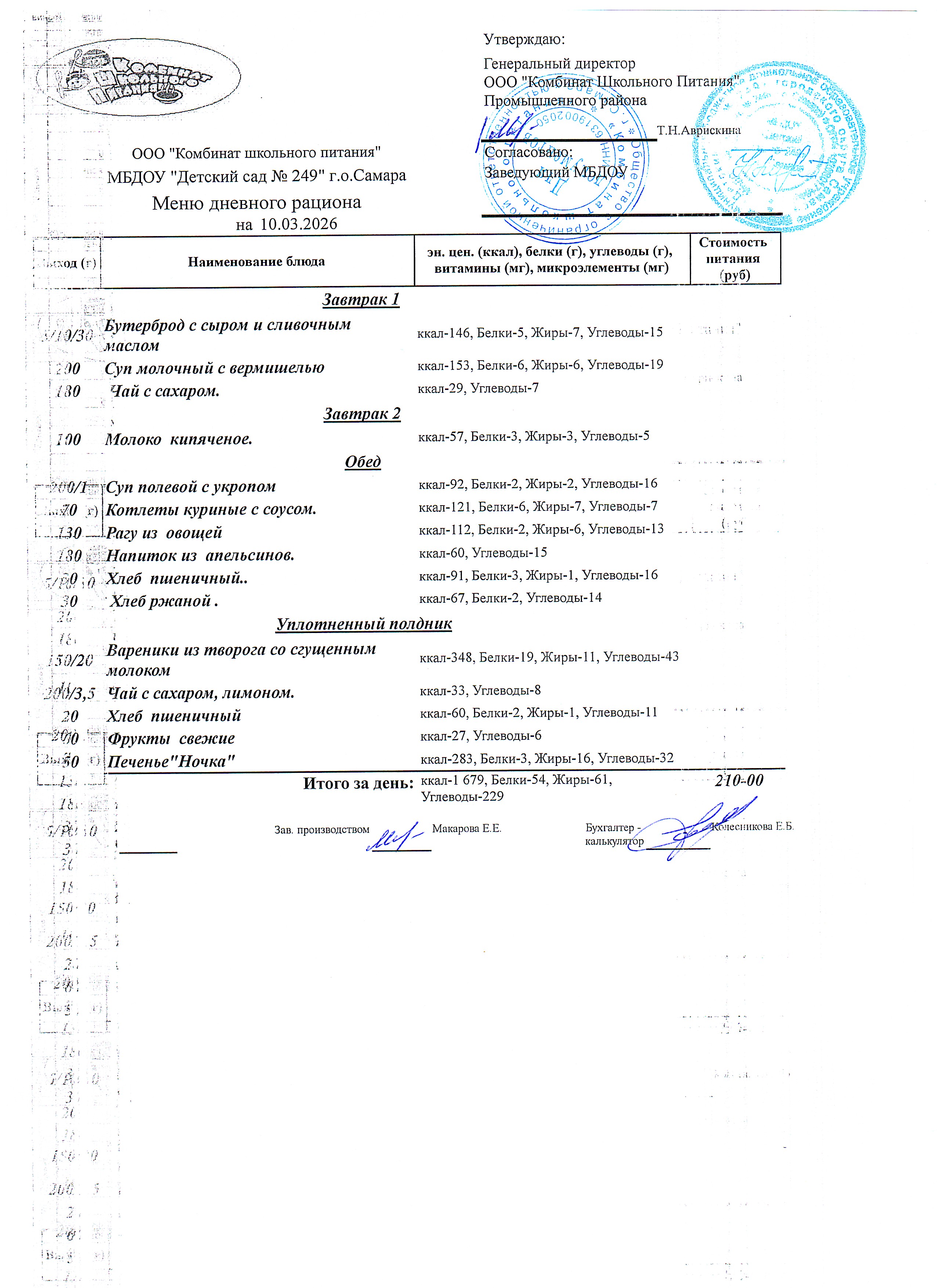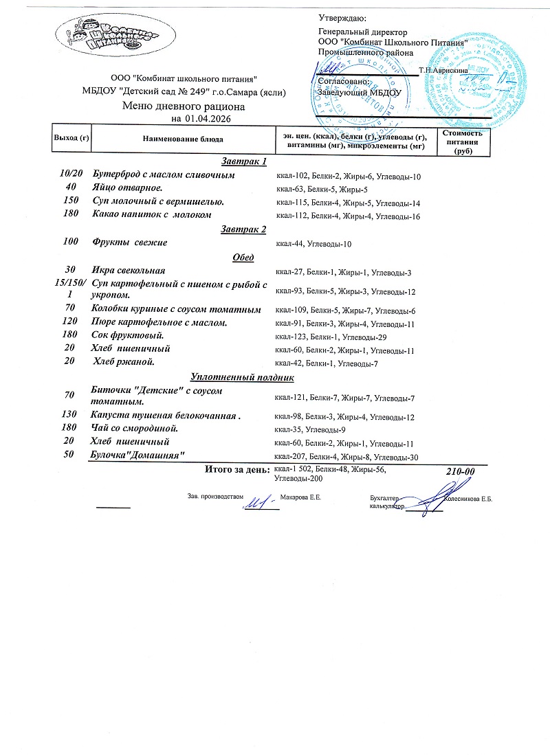 Основное 10-дневное меню для детей от 3 до 7 лет (весна)