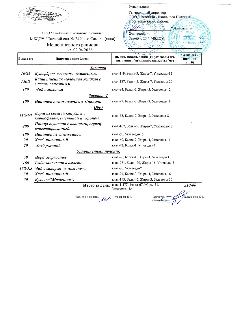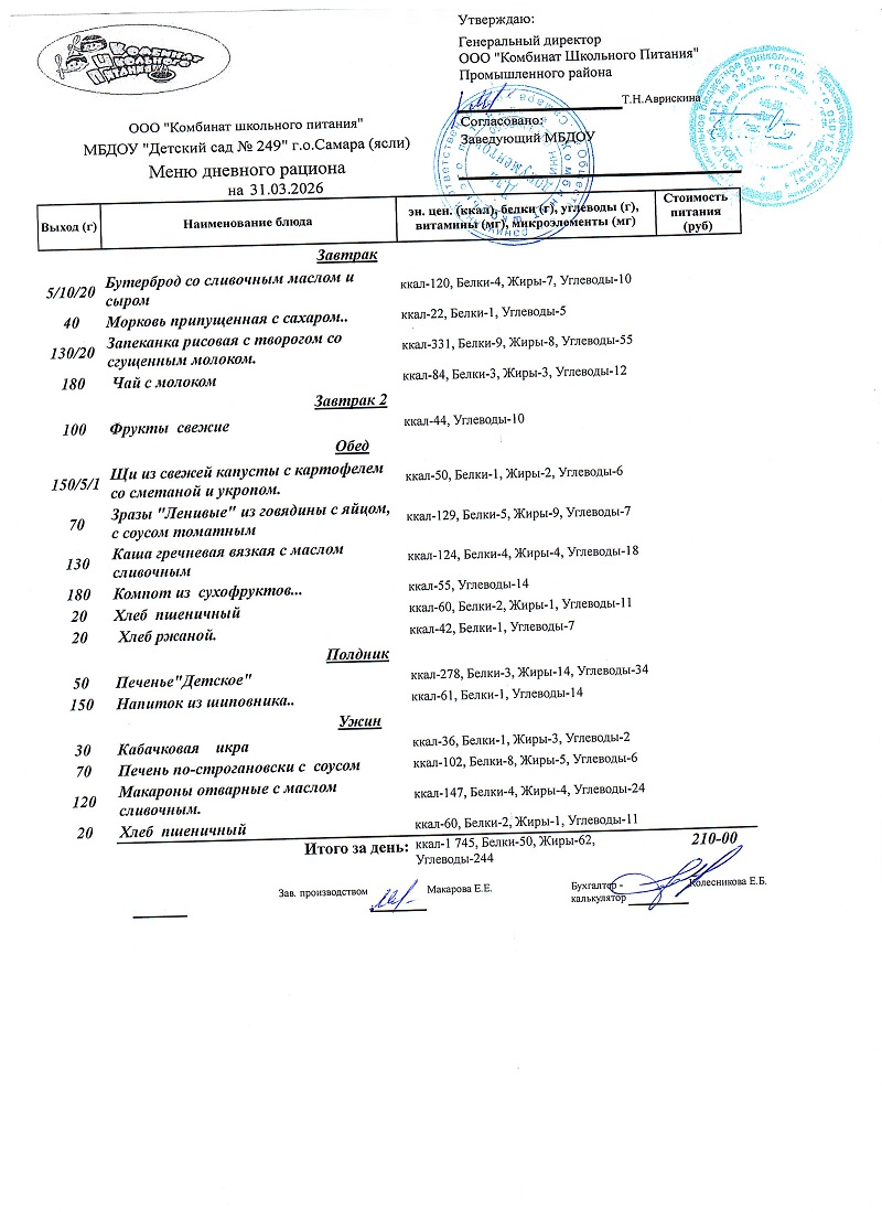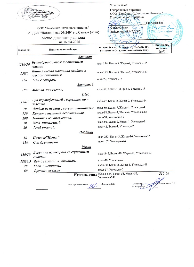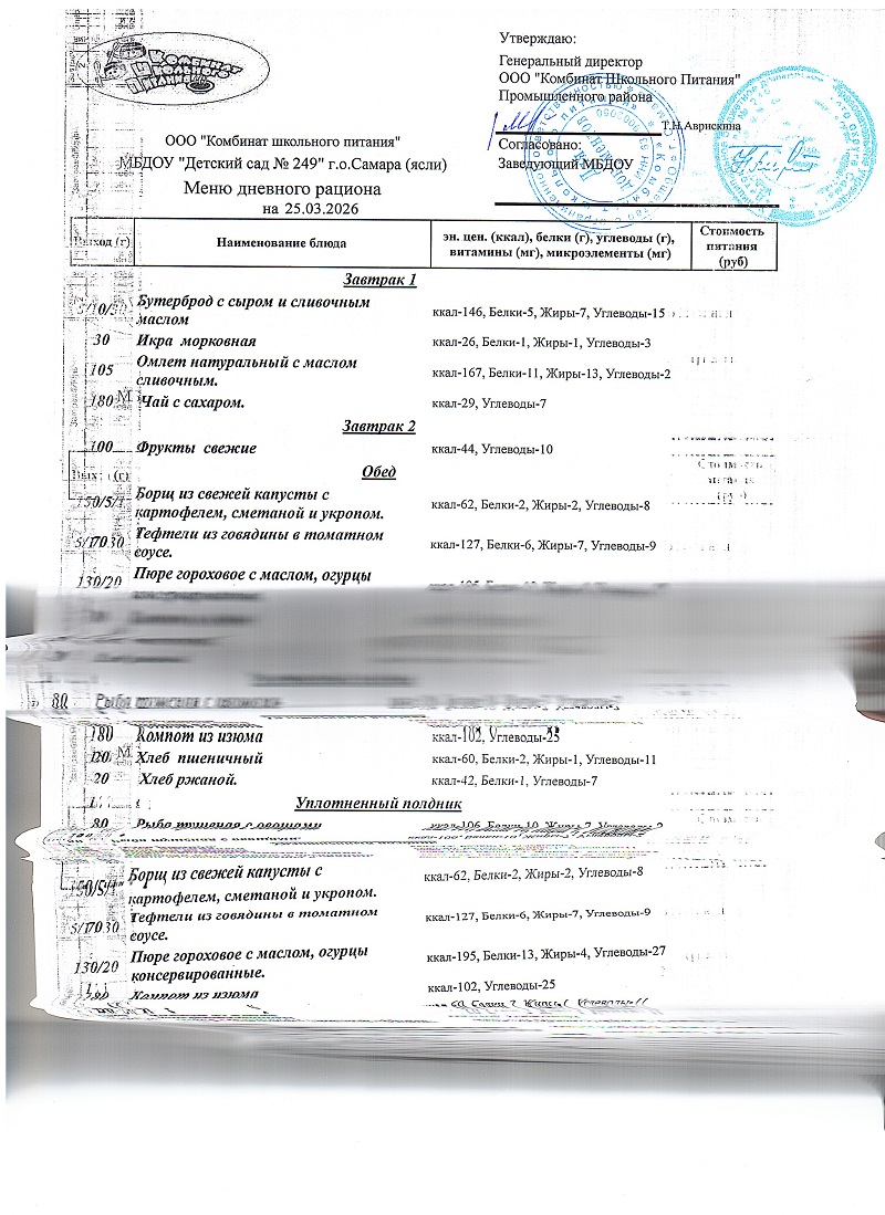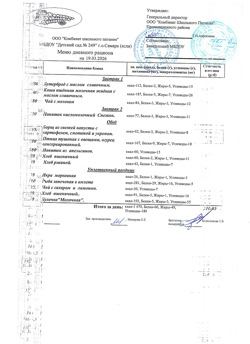 В МБДОУ «Детский сад № 249» г.о. Самара организуется питание в соответствии с действующим СанПиН.