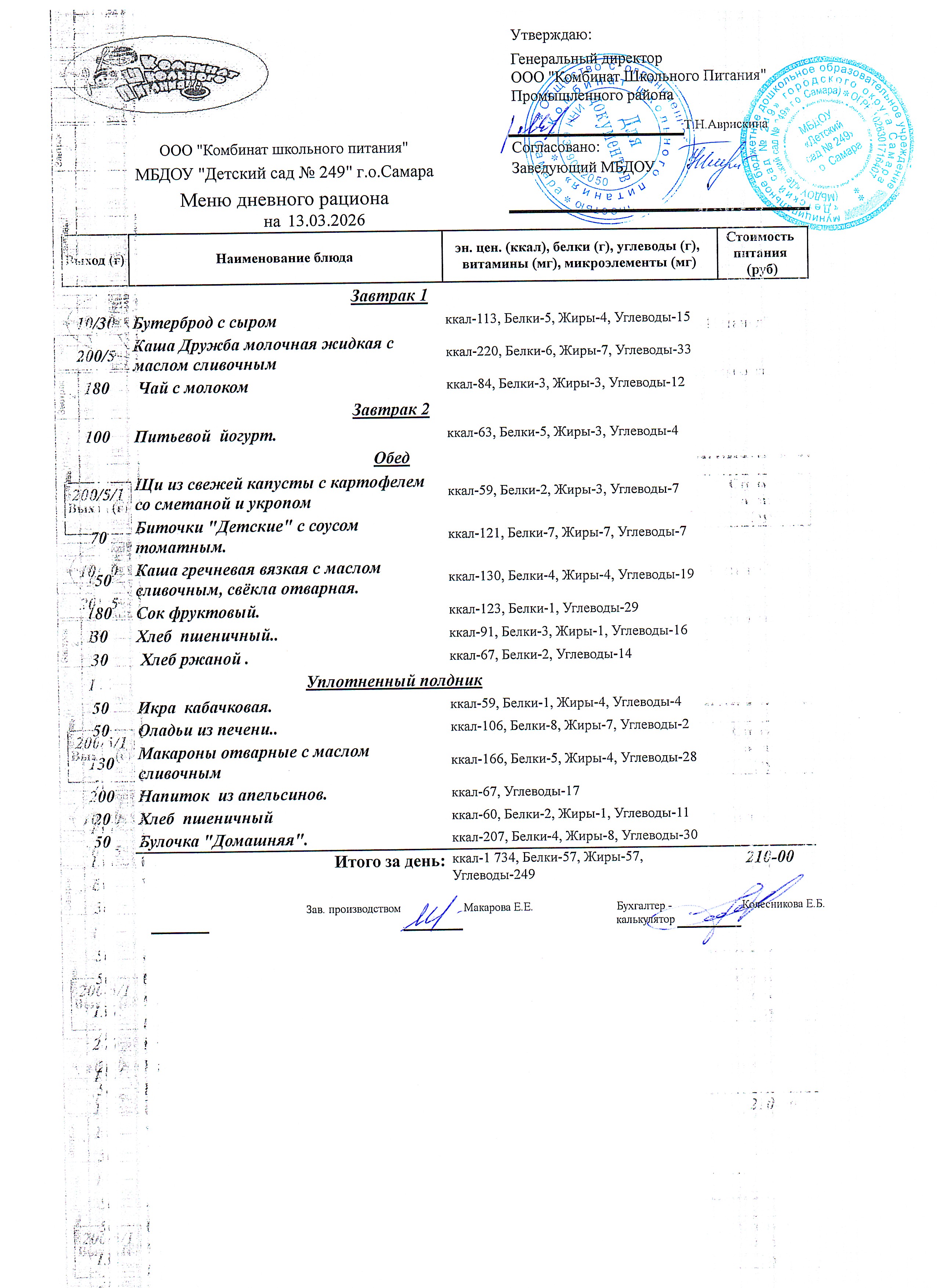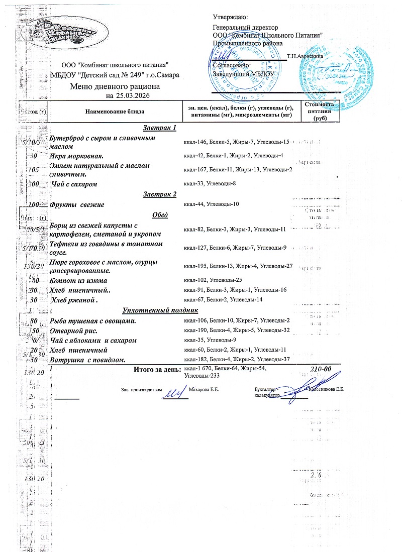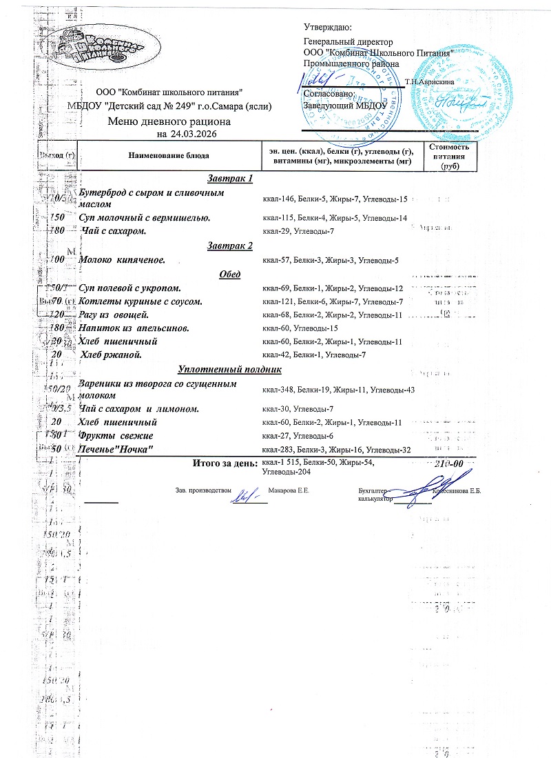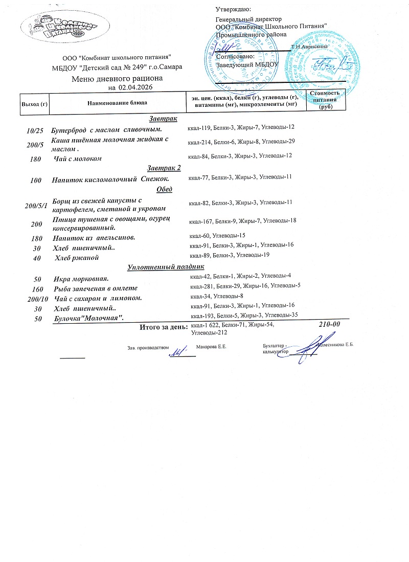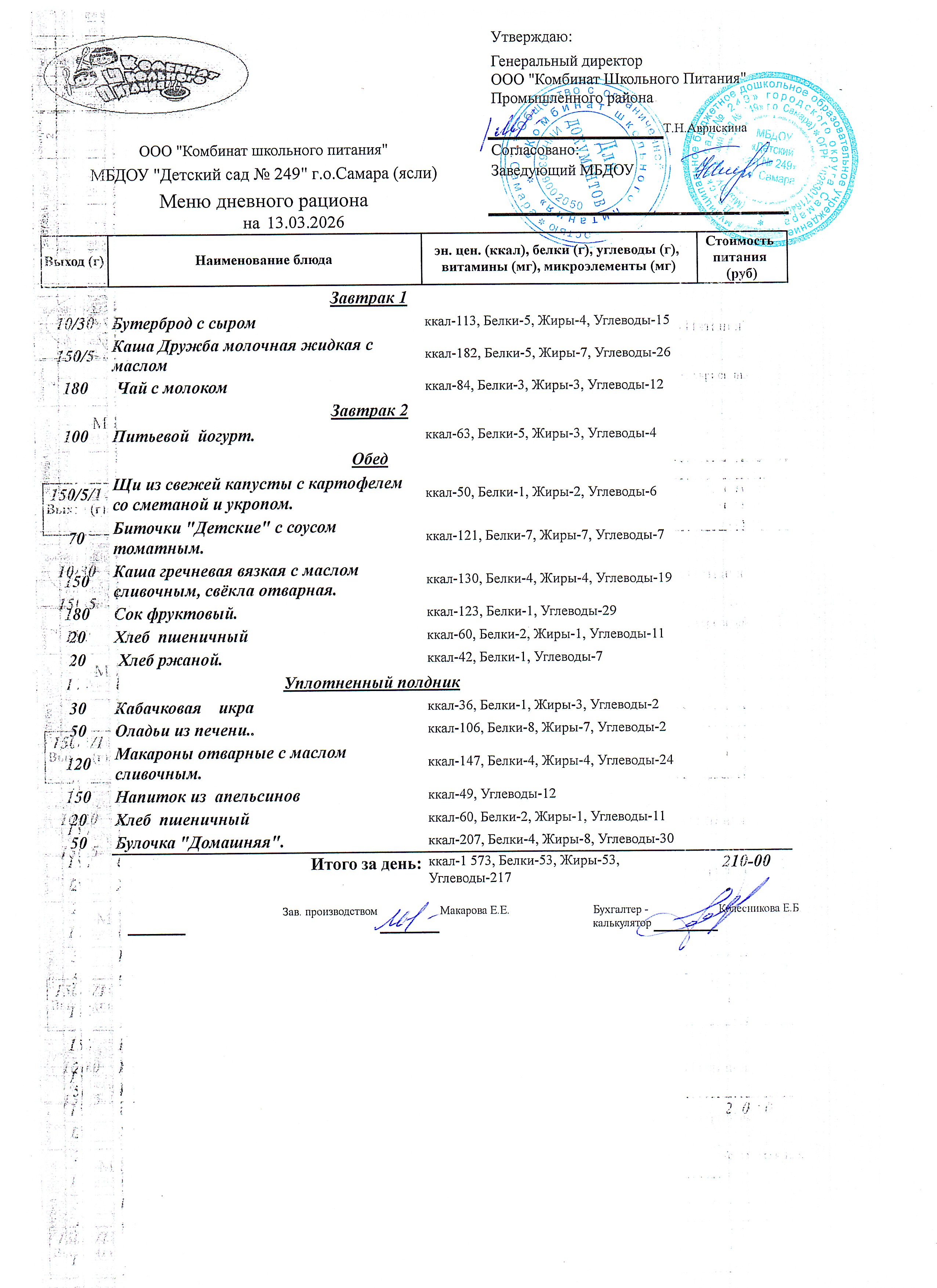 В МБДОУ «Детский сад № 249» г.о. Самара организуется питание в соответствии с действующим СанПиН.