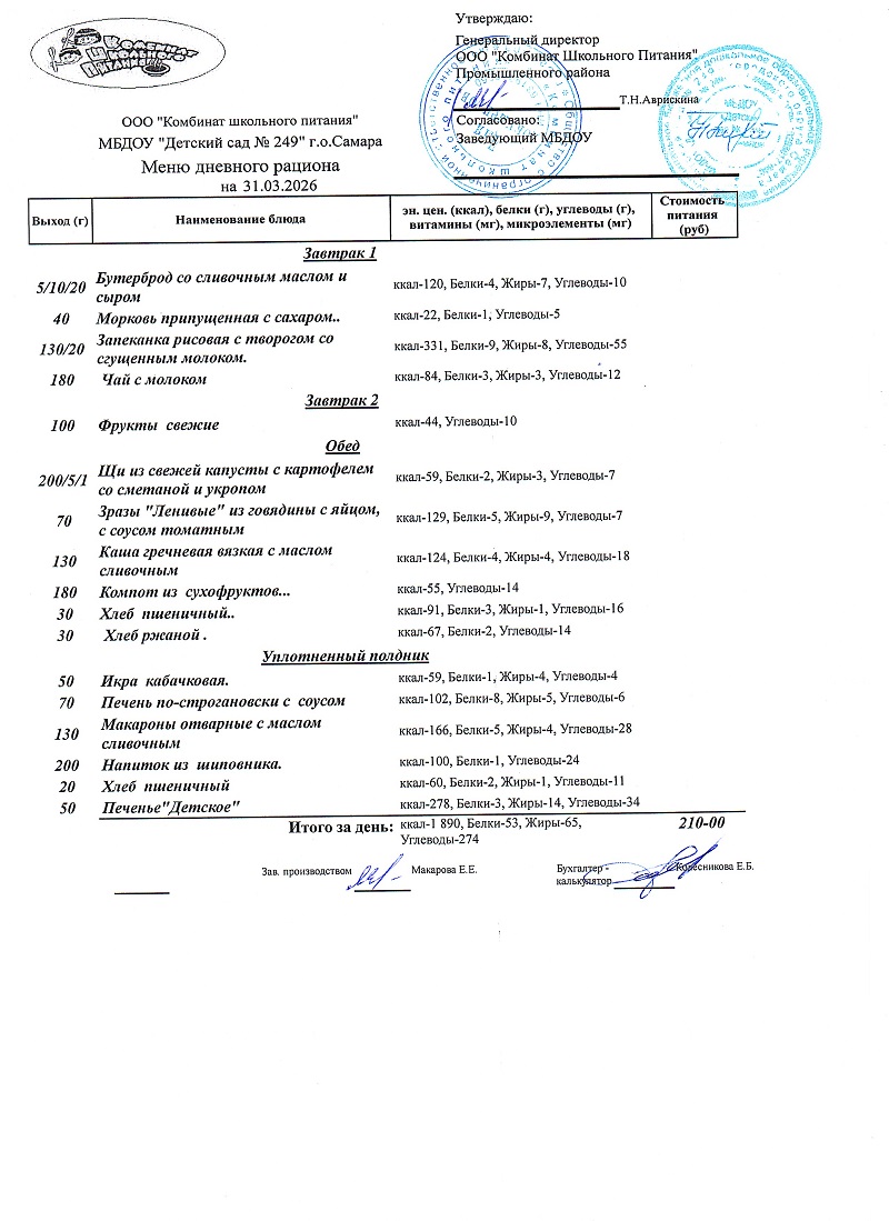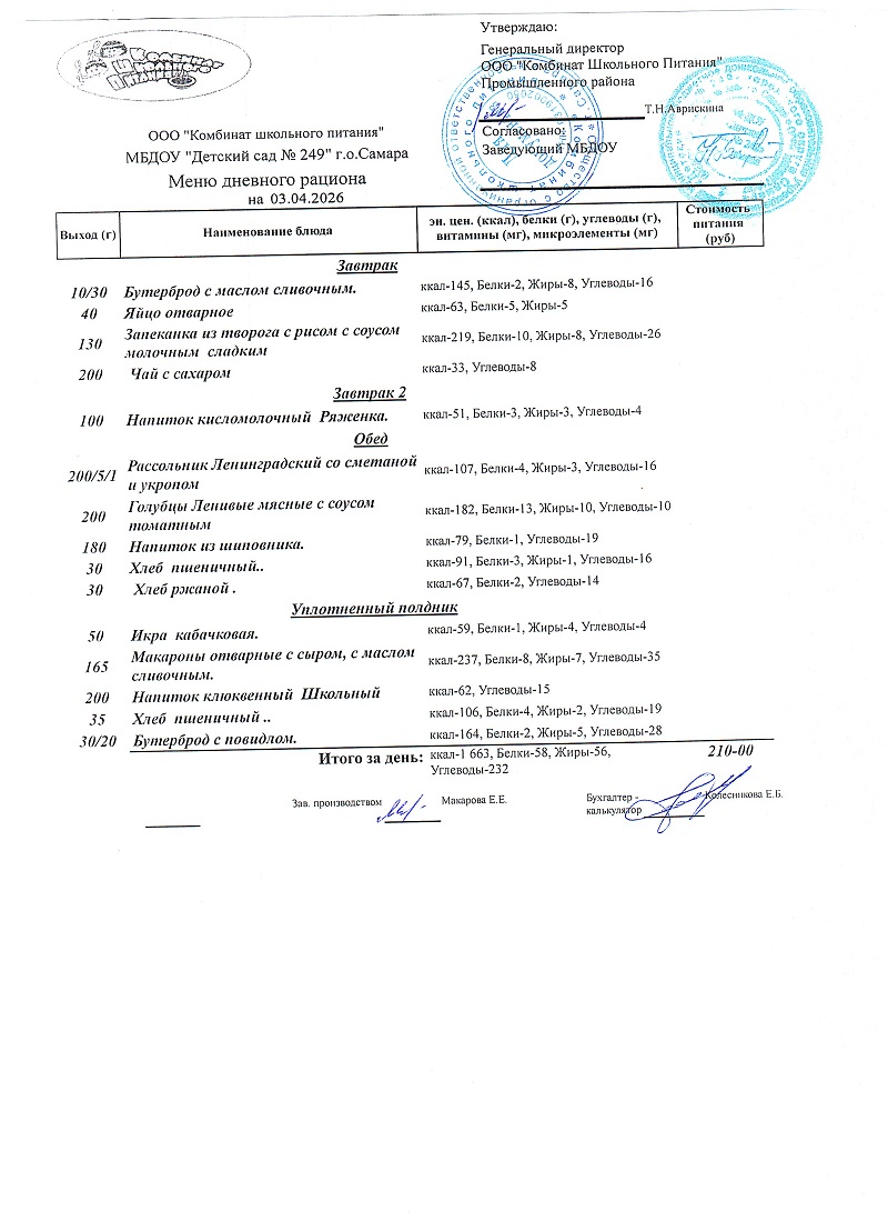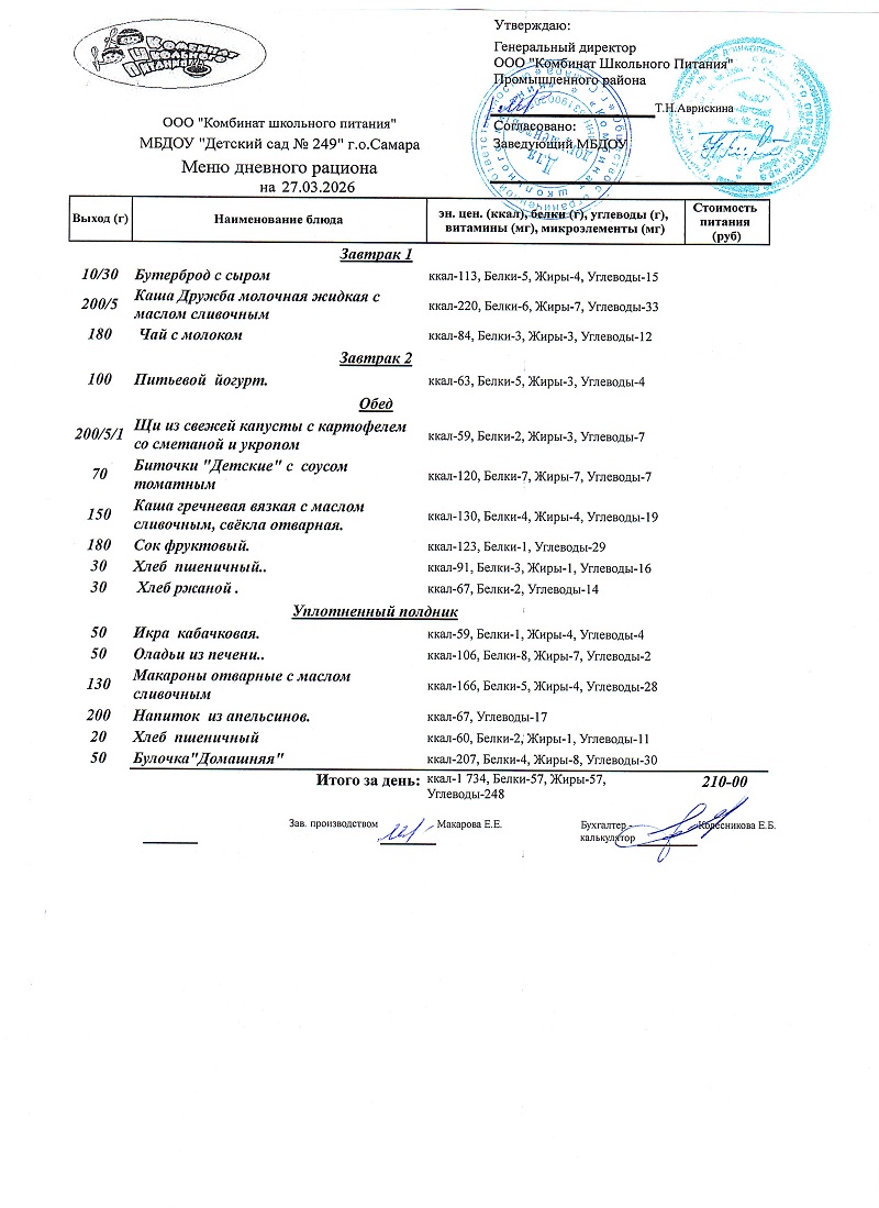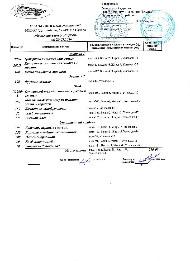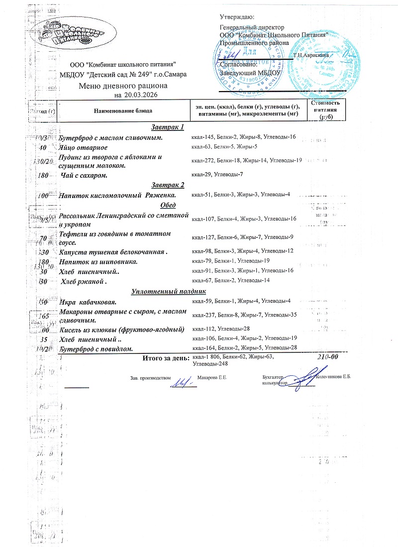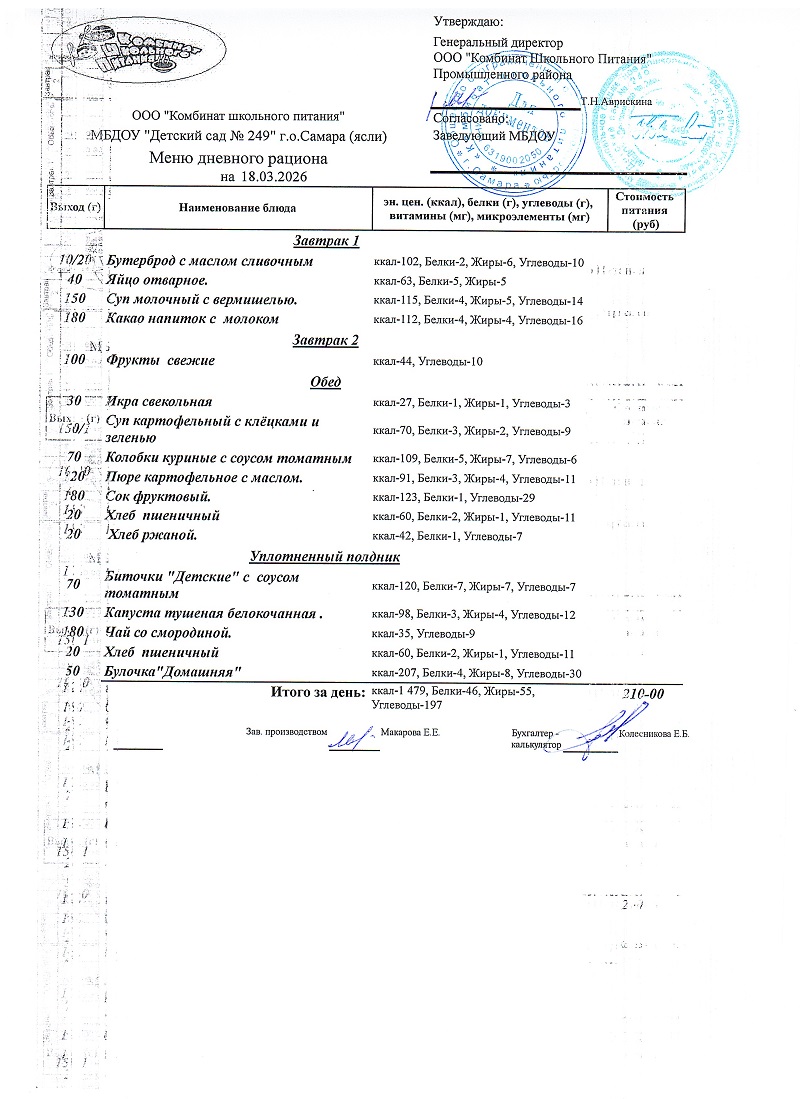 В МБДОУ «Детский сад № 249» г.о. Самара организуется питание в соответствии с действующим СанПиН.