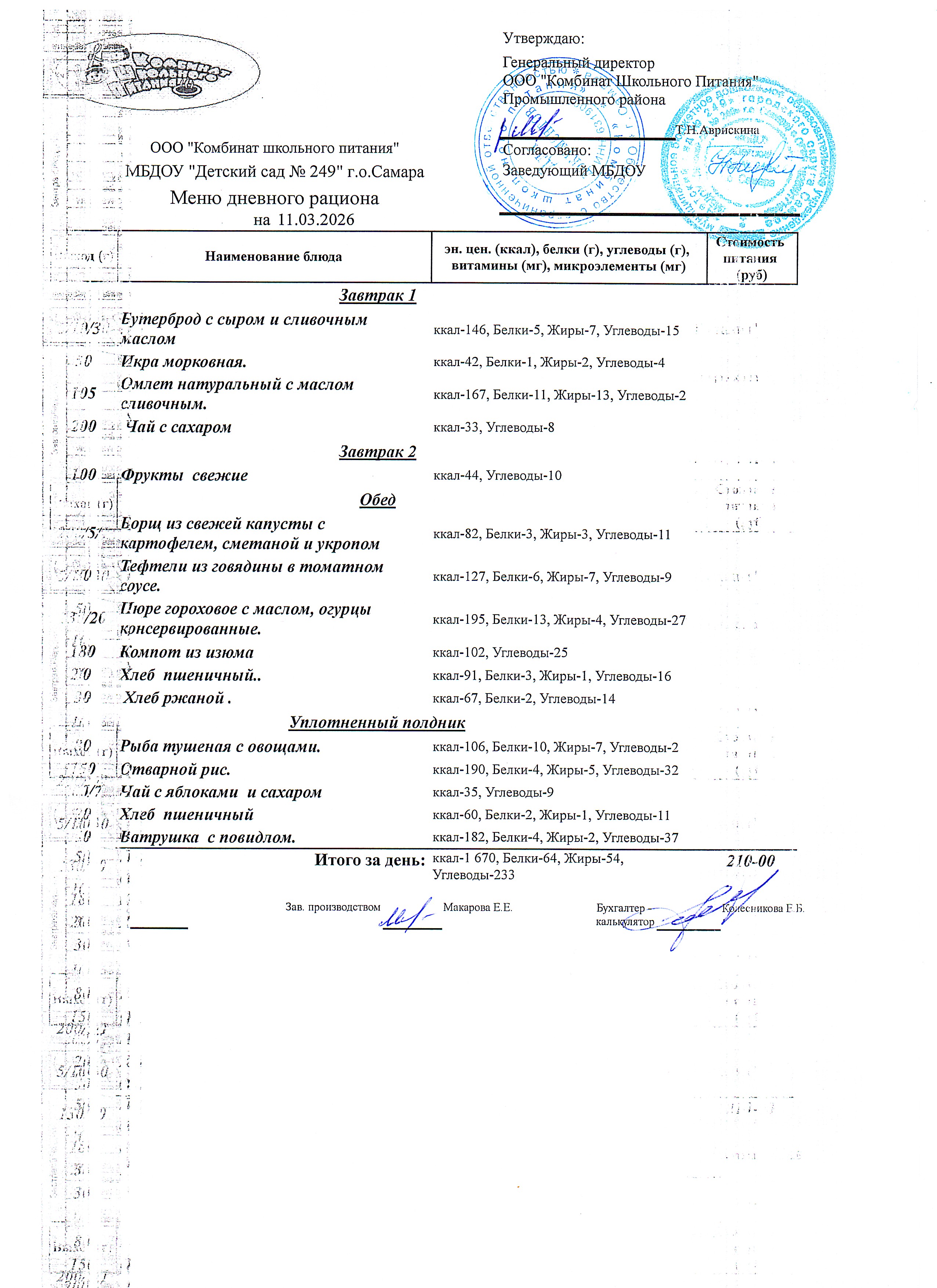 Основное 10-дневное меню для детей от 3 до 7 лет (осень-зима)