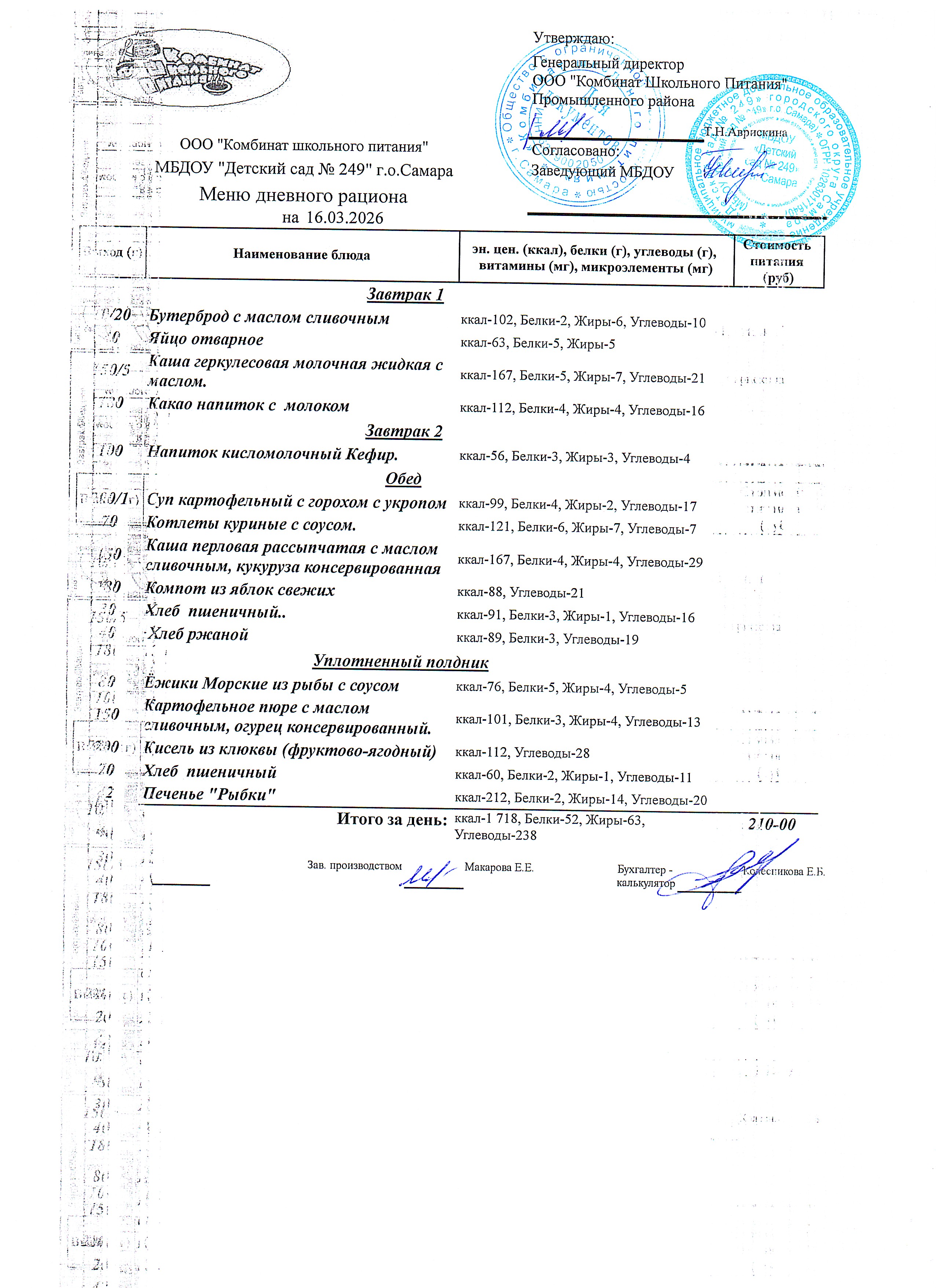 Индивидуальное диетическое меню дневного рациона питания (код №92) для Мальцева Д.П.
