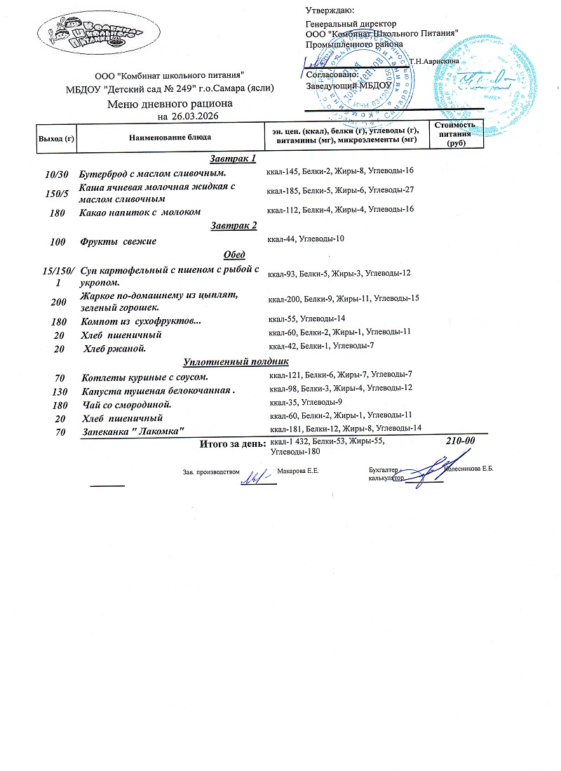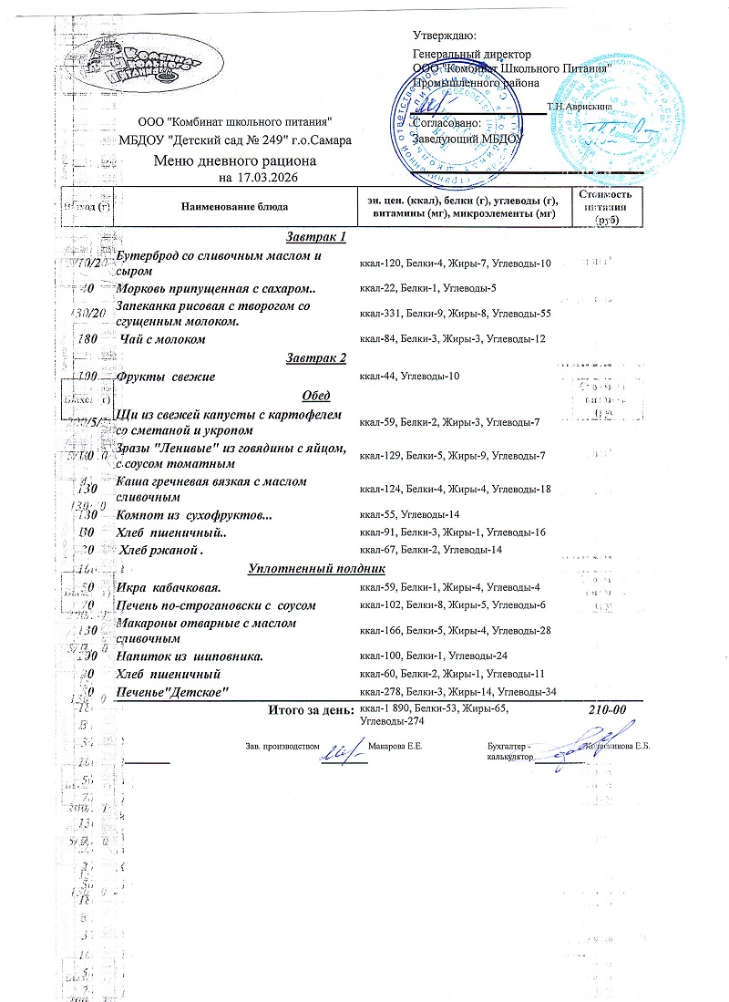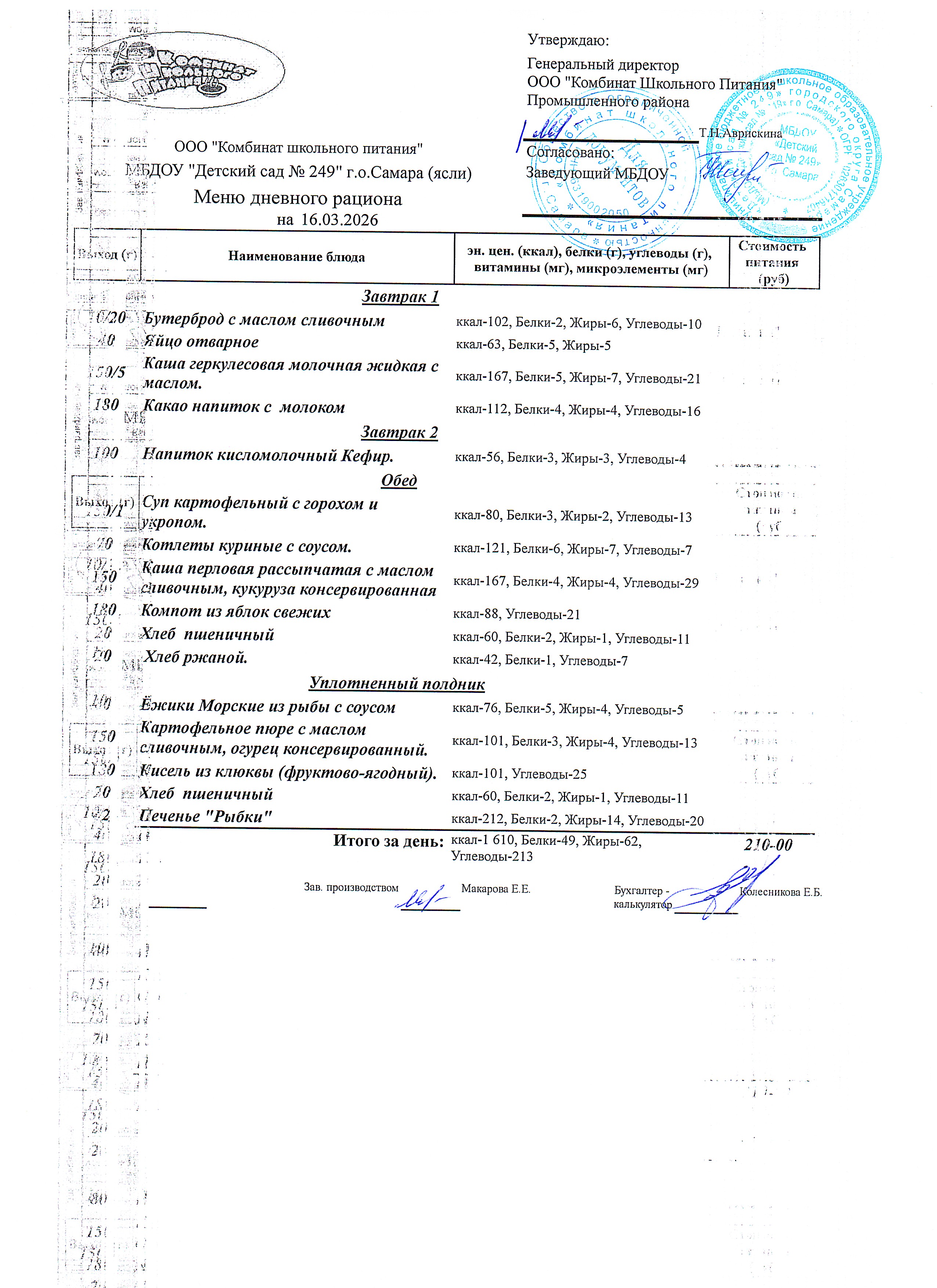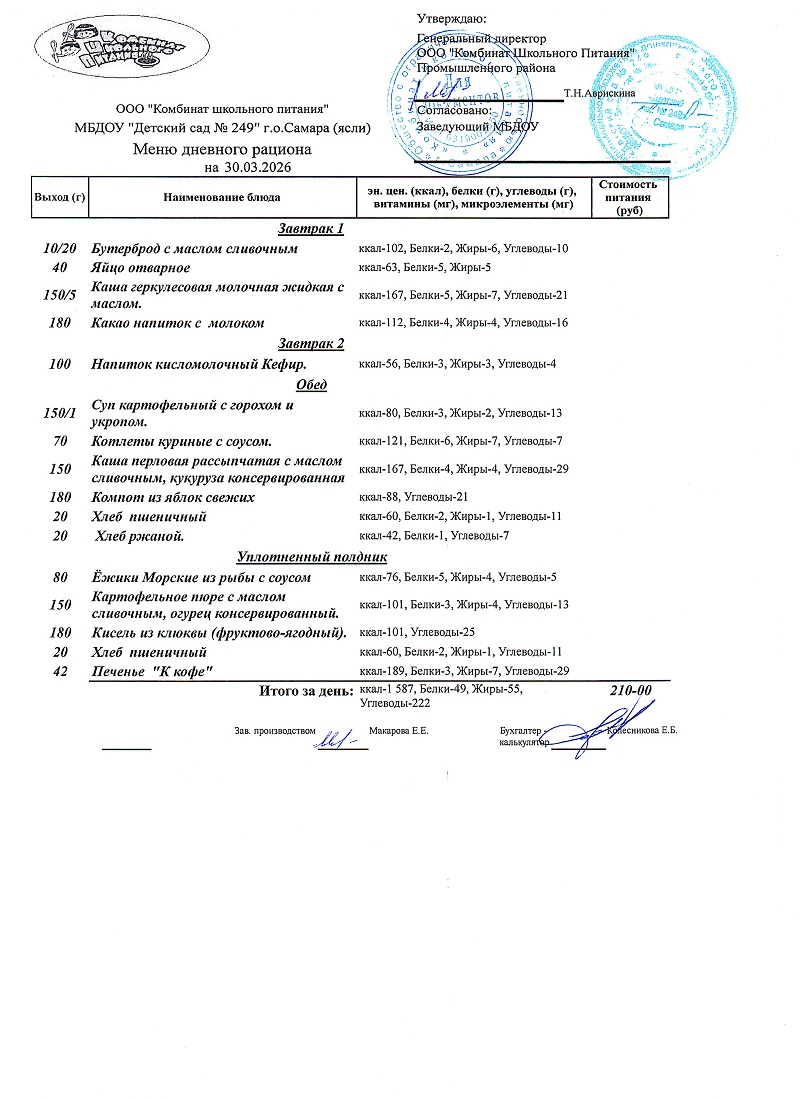 Актуальное утверждённое меню (примерное по сезонам в соответствии с возрастной категорией) обучающихся